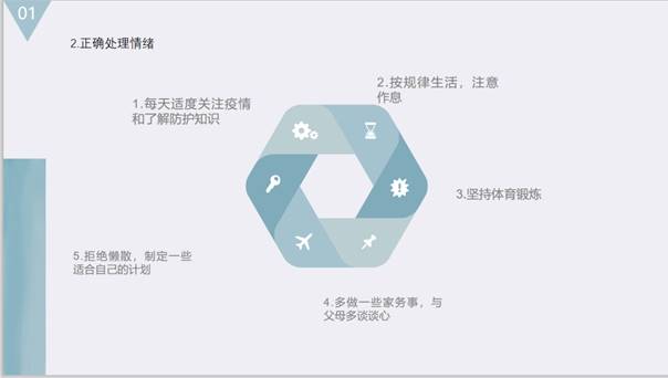 14021804班心理委员利用精美的PPT,用调侃式的开头,指出了大家在家学习存在的问题。而后就心理问题的产生及预防进行了讲解,同学们都受到很大的启发。