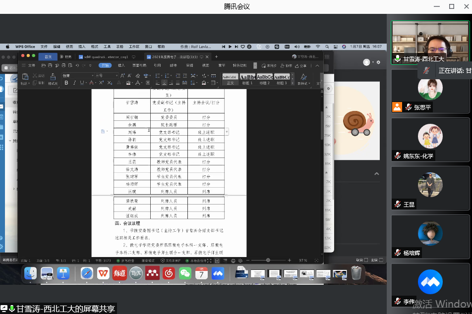 党支部书记、教师代表、学生代表参加会议。会议由甘雪涛主持,以线上形式开展。