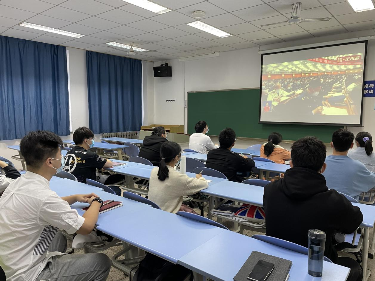 楼140会议室共同观看党的二十大开幕会,认真聆听习近平总书记向大会所作的报告,共同亲历这一庄严的时刻,第一时间学习领会大会精神。其他教工党员、学生党员以党支部、班级、教研室、寝室为单位分别在教室、教研室、寝室等地,通过电视、网络等多种形式收看开幕会盛况。