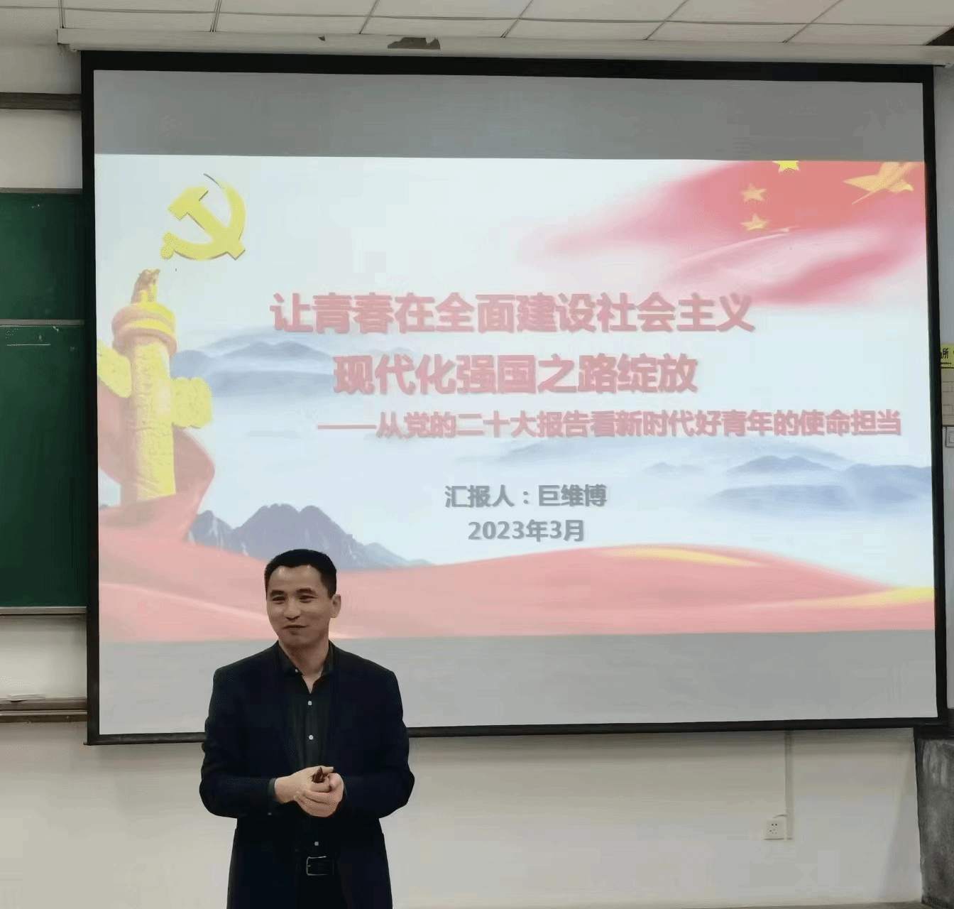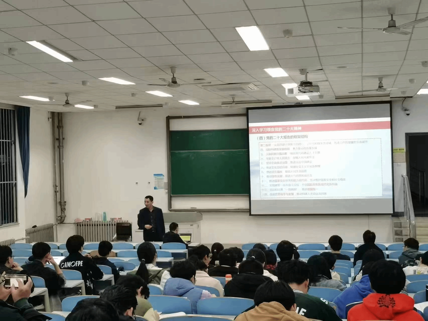 党委书记巨维博在教西A102做《让青春在全面建设社会主义现代化强国之路绽放——从党的二十大报告看新时代好青年的使命担当》专题宣讲。会议由MissAV