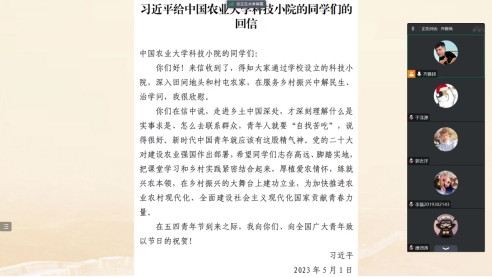 本科三支部组织深入学习“习近平给中国农业大学科技小院的同学们的回信”(以下简称“回信”),本次会议由齐雅铎同志主持,本科三支部全体党员同志参加。