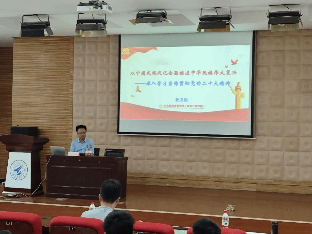 钟卫国教授以《以中国式现代化全面推进中华民族伟大复兴——学习贯彻落实党的二十大精神》为题,从经济学的角度带领师生们领悟二十大精神的内涵,用生动的现实案例讲述了中国从站起来、富起来到强起来的伟大飞跃,让师生们领悟了以中国式现代化全面推进中华民族伟大复兴的历史逻辑、理论逻辑、实践逻辑,更加坚定了坚持和发展新时代中国特色社会主义,是当代中国发展进步的根本方向。