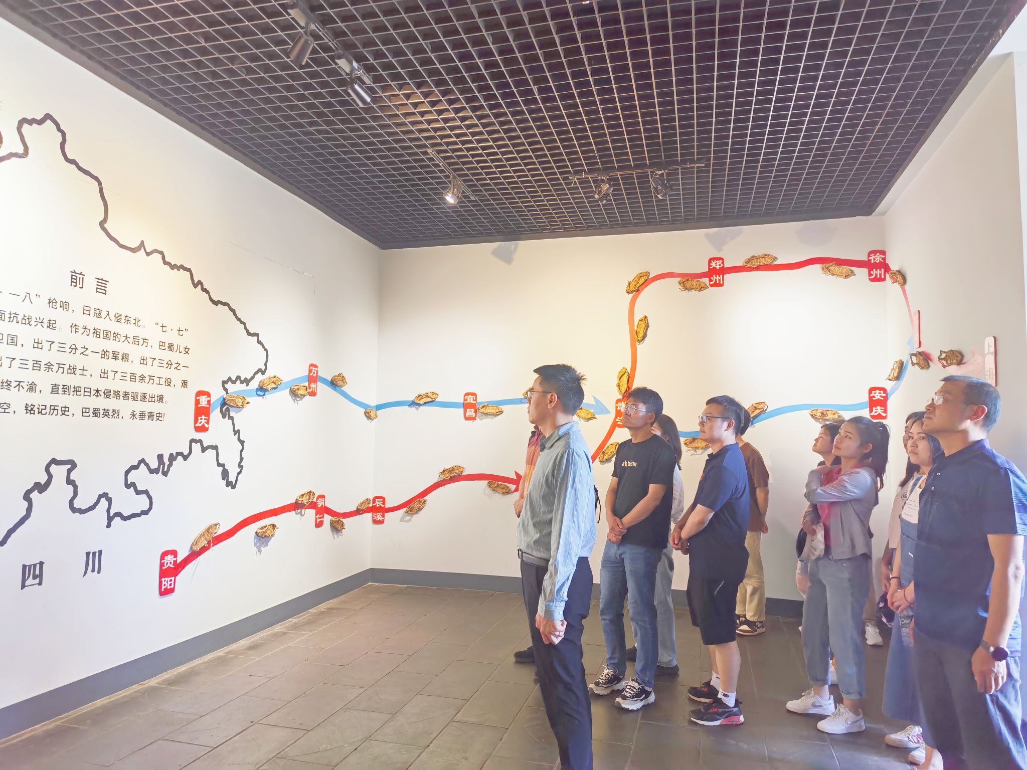 实践活动从参观川军抗战馆开始,在讲解员的带领下,大家深刻感悟了“七•七”卢沟桥事变爆发后,在中国共产党抗日民族统一战线政策的感召下,三十万川军出川抗战、三百万壮丁奔赴前线、四川作为大后方、民族复兴基地、出人出钱出粮支援前线抗战的历史。