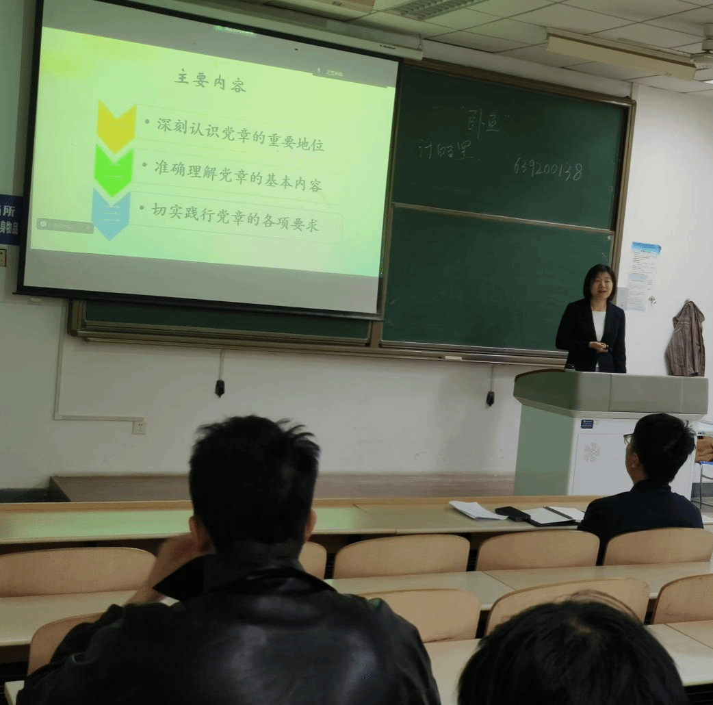 刘晓芬教授以“学习遵守党章,做新时代合格党员”为主题,深入浅出、旁征博引的阐述了党章的重要地位、党章的基本内容、如何践行党章等三个方面内容,系统的讲解了新时代大学生应具有的高尚品格。通过学习,同学们对党章的深层次内涵有了更加深刻地理解,对传承和弘扬伟大建党精神有了奋不顾身的不竭动力,进一步坚定了为共产主义事业奋斗终生的理想信念。