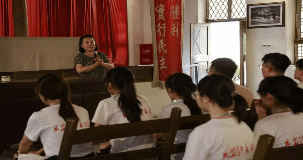 6月24日,实践队首先走进王家坪革命旧址,跟随讲解员参观军委礼堂、作战研究室等,随后共同聆听旧址管理处冉春嫚讲授《毛泽东与毛岸英的家国情怀》。