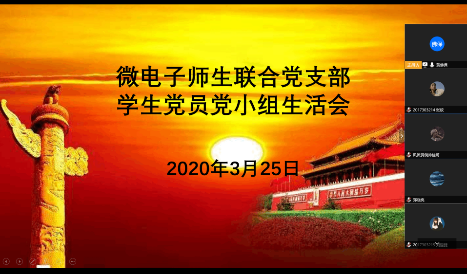 云端讲座结束后,学生党小组召开了线上组织生活会,会议由辅导员黄佛保老师主持,党员同学们围绕杨院长的讲座内容各抒己见,纷纷发表自己的学习体会与感想。