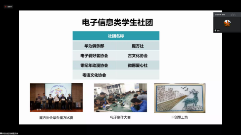 的学科特色、师资力量、专业方向和就业前景等有了全面的了解与认识。同时他还强调了电子信息科技在当代智能社会得支柱地位,进一步坚定了同学们的学习信心。