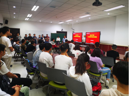 的建设情况,分享了自己的研究经验,重点强调了时间的宝贵性,建议同学们做好学习规划,科学安排两年半的学习生活。他还表示同学们要融入教研室这个大家庭,多与导师和同学交流,不要一个人孤军奋战,要学会合作和高效沟通。对于不同课题的同学,也要积极交流,在讨论中碰撞出新的思路与灵感。