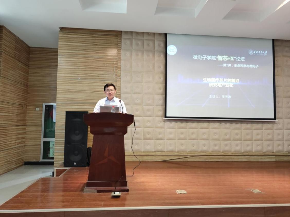 最后,吴天准博士介绍了依托中科院深圳先进技术研究院微纳系统与仿生医学研究中心进行的工作,包括微纳神经界面、基于仿生分子诊断两方面的研究,他从电极的纳米修饰、表面刺激、仿贻贝纳米线电极、数字PCR检测重大疾病等角度循序渐进的介绍,突出微电子技术在医疗领域的重要性、创新性。