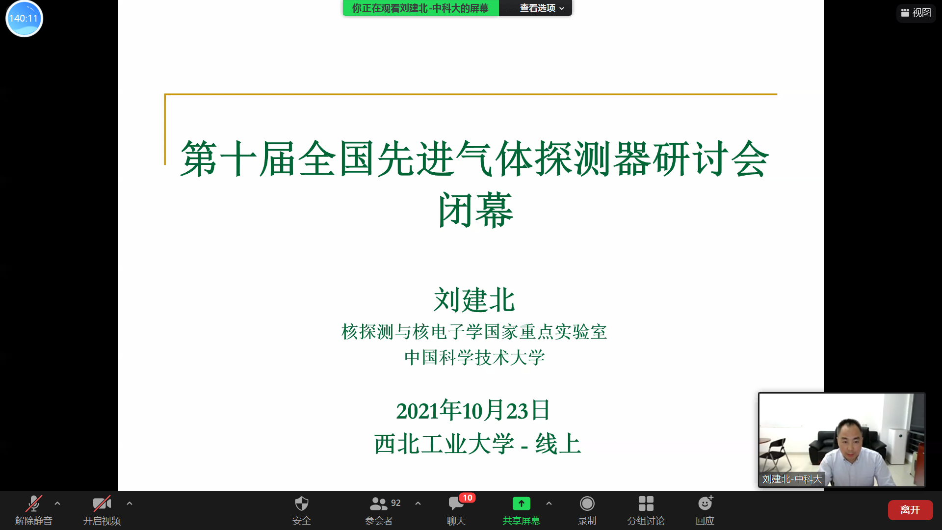 最后,中国科学技术大学刘建北在会议闭幕式上发言,回顾了往届全国先进气体探测器研讨会的情况,本次会议在参会人数、报告数量和质量创历届会议新高。