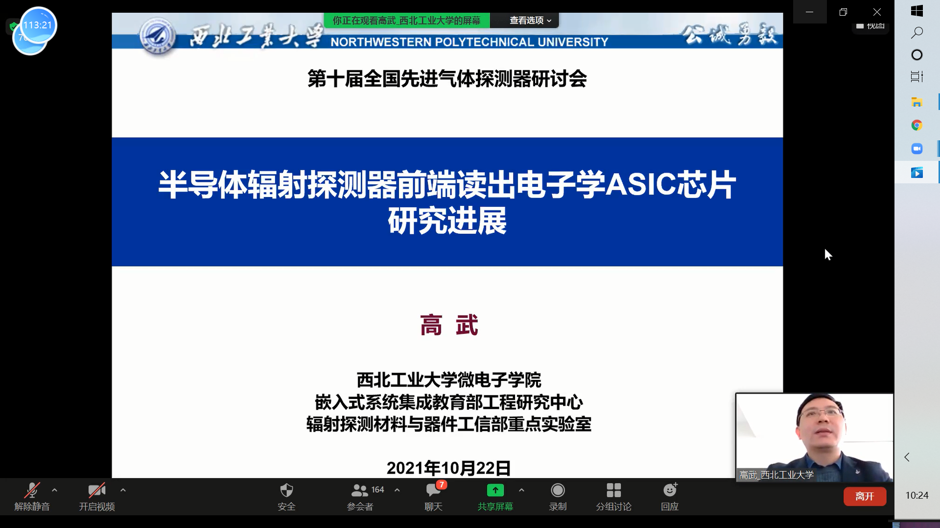 向各位专家取得的优异科研成绩表示祝贺。同时,张助理还向与会人员介绍了西工大的简况、最近学科布局、辐射探测材料和核电子学芯片研究领域的情况。