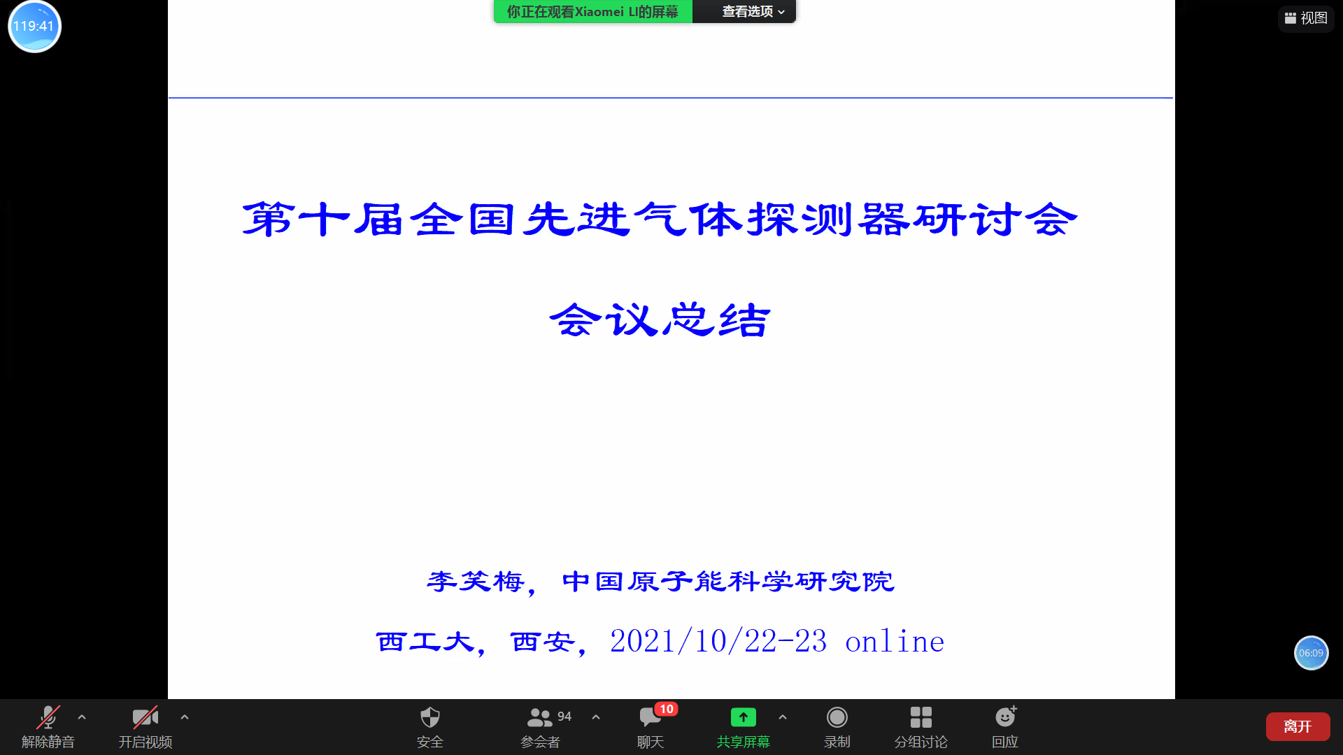 10月22~23日,第十届全国先进气体探测器研讨会通过在线会议形式顺利召开。本次会议由核探测与核电子学国家重点实验室主办,MissAV