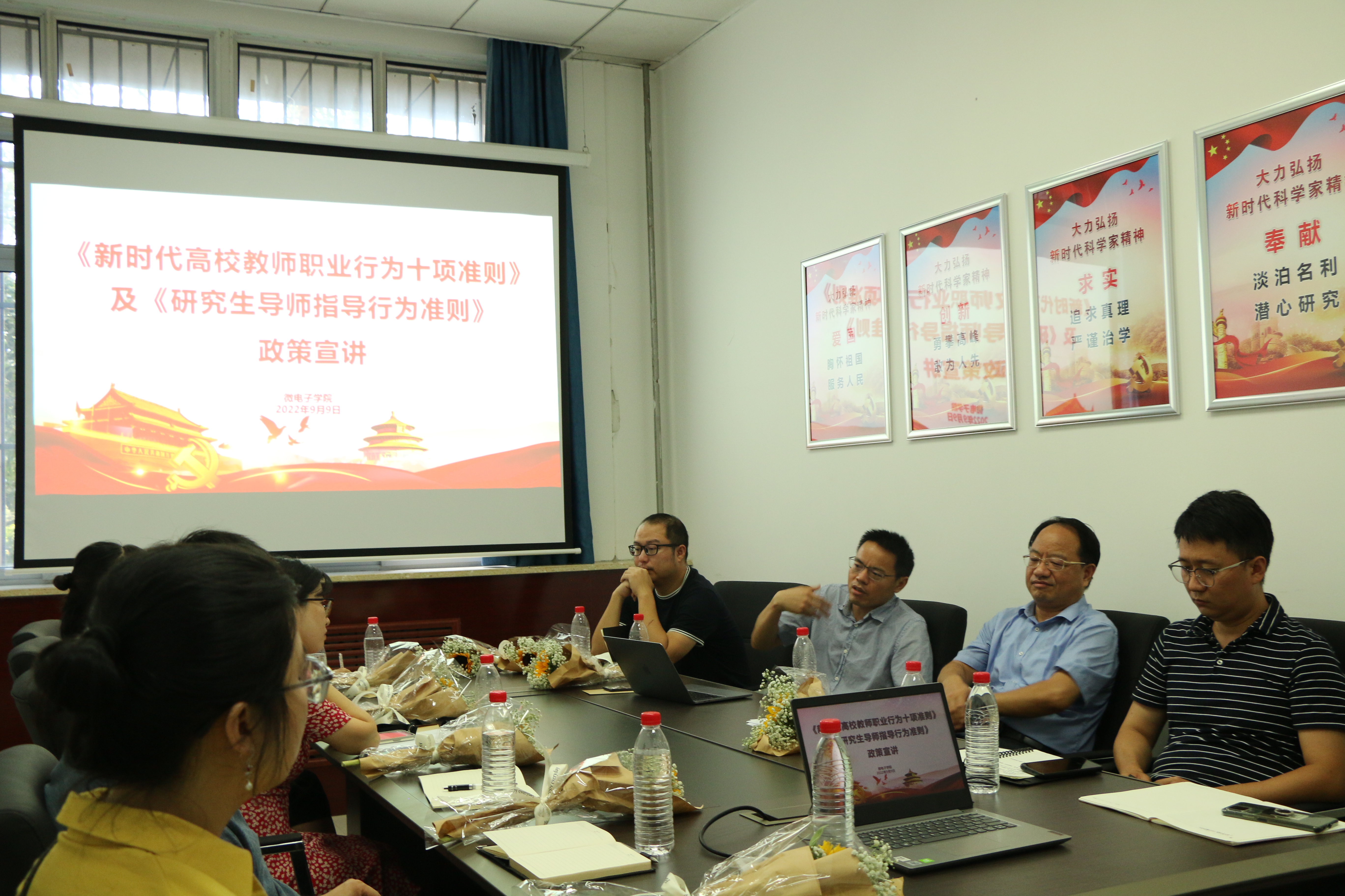 师德师风建设,深入推进师德专题教育,全体参会老师观看了《习近平的教师情》;甘雪涛就《新时代高校教师职业行为十项准则》及《研究生导师指导行为准则》进行了宣讲,强调了师德师风的重要性,希望各位老师引以为戒,知准则、守底线,认真遵守新时代高校教师职业行为十项准则和研究生导师指导行为准则,坚守“立德树人”之道,锤炼“学高为师”之能,铸造“身正为范”之魂,争做“四有”好老师,为MissAV