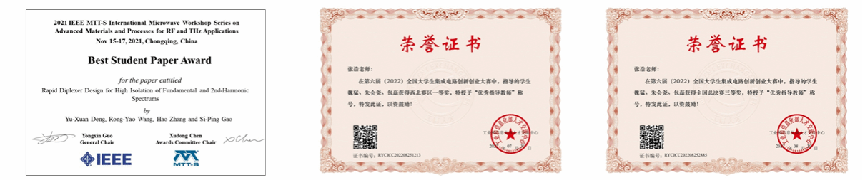 在人才培养方面,张浩老师主讲了《射频集成电路设计》与《集成电路版图设计》等课程,同时以赛促教,指导本科生获国际学术会议最佳学生论文奖、集创赛西北赛区一等奖,指导本科毕设15人,4人获优秀毕业生荣誉称号,指导硕士生4人,2人获优秀研究生荣誉称号。在日常的教书育人过程中,张浩老师能够对参加科研项目的学生开展爱国主义、学术诚信和集体主义教育,在价值取向、学术导向、科技创新等方面言传身教、以身作则,积极弘扬科学家精神,培养学生的责任担当和严谨求实的科研作风。深入贯彻MissAV “顶天、立地、育人”的科研工作理念。