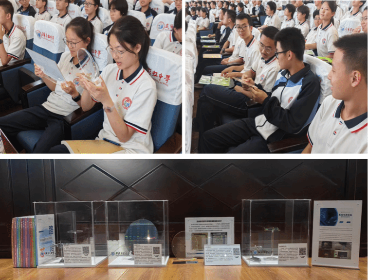 为咸阳彩虹中学授予优秀生源基地,探讨共建兴趣课程,赠送科普书籍、教具、集成电路制备虚拟仿真实验软件,开展科普讲座。