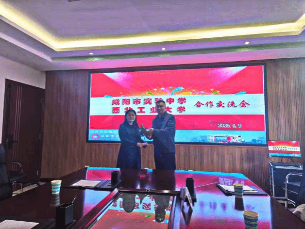 向咸阳市实验中学赠送了象征西工大“三航”特色的飞机模型,并递送喜报。