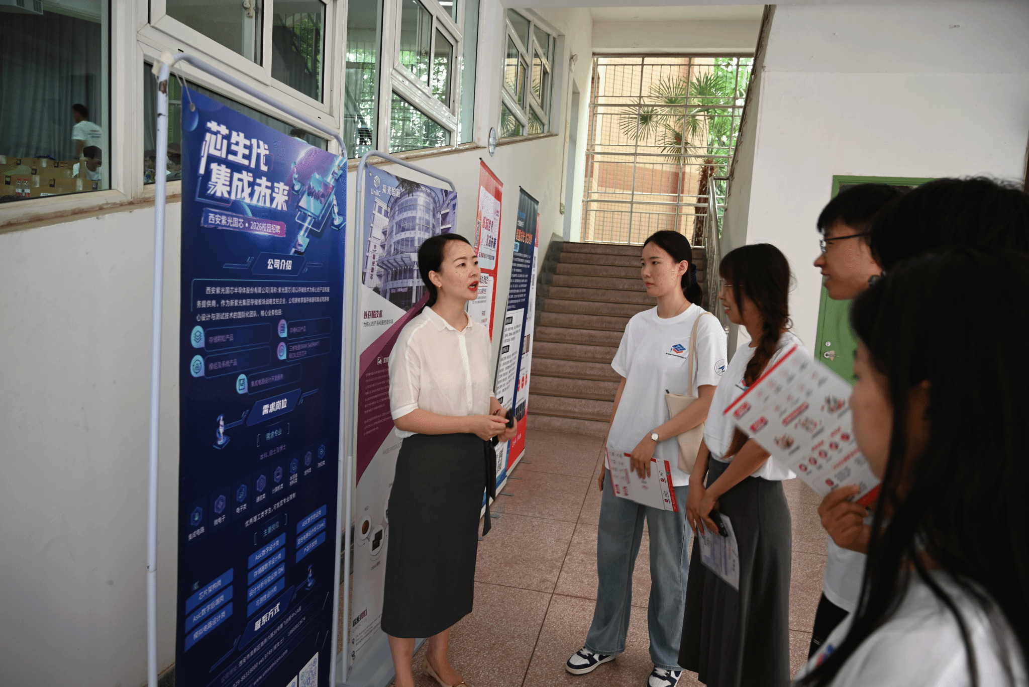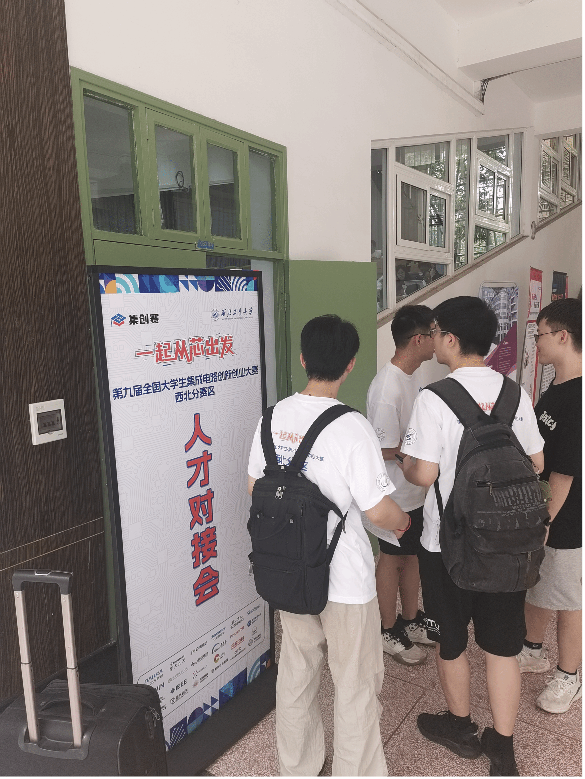 在候场区举办了“集成电路人才对接会”,华为技术有限公司、北京竞业达数码科技股份有限公司、龙芯中科技术股份有限公司等11家知名企业参加,为参赛学生讲解行业形势,辅导职业规划,对接人才需求,现场气氛热烈。