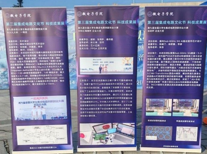 各年级学生的创新实践作品。模拟与混合信号芯片设计、FPGA应用开发、AI驱动宽带芯片设计等一系列优秀的科创作品惊艳亮相。这些凝聚着智慧与汗水的成果,不仅吸引了大量同学驻足观看,更成为了激发创新灵感的火种。