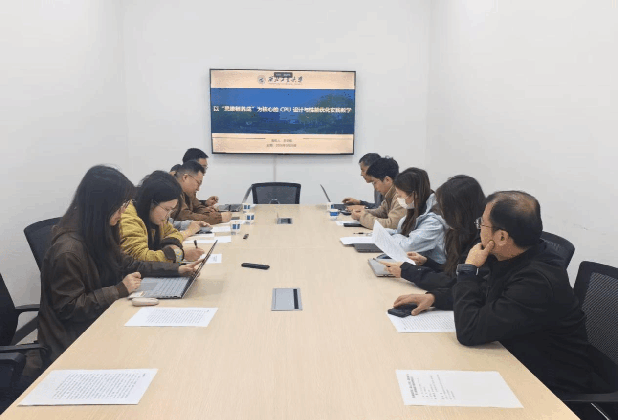 王党辉副教授作题为《以“思维链养成”为核心的CPU设计与性能优化实践教学》的专题报告。报告中,王老师结合自身多年CPU设计教学与实践经验,深入阐述了“思维链养成”在计算机组成与系统结构课程中的实践路径。针对传统教学中学生重工具轻原理、回避复杂问题等痛点,他提出教学重构思路,推动教师从知识讲授者向思维引导者转变。围绕课程思政元素挖掘与融入,王老师结合专业教学实际,从科学方法论、国产芯片发展、工匠精神与团队协作等维度,系统讲解思政元素融入路径,通过绪论章节集中引领、课堂教学随机渗透等方式,将家国情怀、工程伦理、创新精神自然融入专业教学全过程。