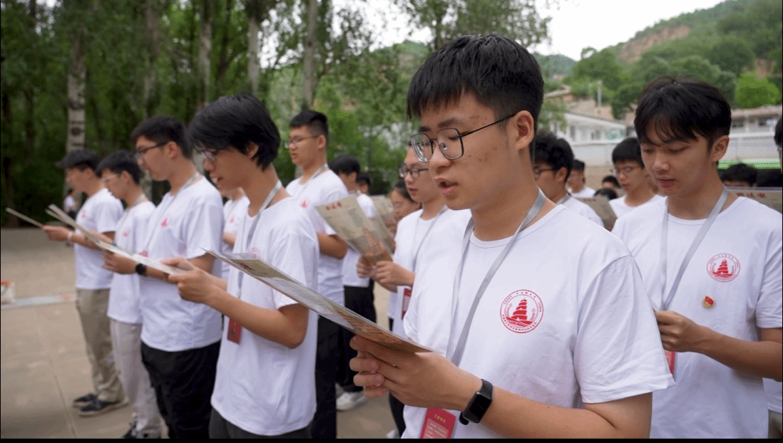 在枣园革命旧址的张思德雕塑下,师生们置身庄严肃穆的氛围中,集体诵读《为人民服务》,在红色经典的字里行间汲取初心力量。随后,全体党员师生举行了庄严的重温入党誓词仪式,字字铿锵,信念如磐。