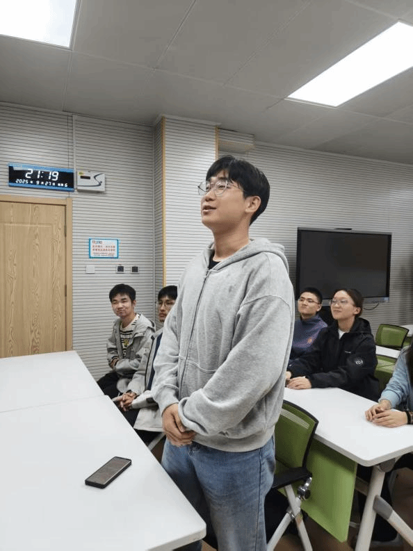 观影结束后,团支部成员移步至教学东楼进行总结会议。会议伊始,全体团员共唱中华人民共和国国歌,在庄严旋律中凝聚爱国情怀。